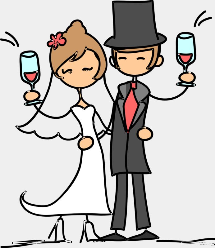 Cartoon Wedding Groom Bride Champagne Glasses 3