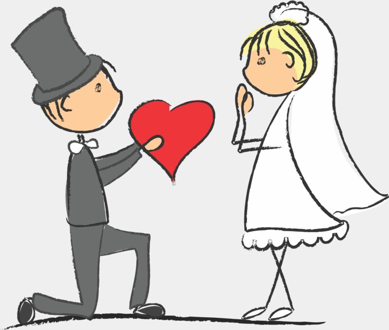 Cartoon Wedding Groom Bride Proposal 1